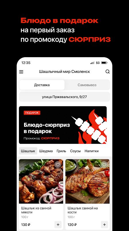 “Shashlyk World” adalah aplikasi pengiriman makanan di Smolensk!
