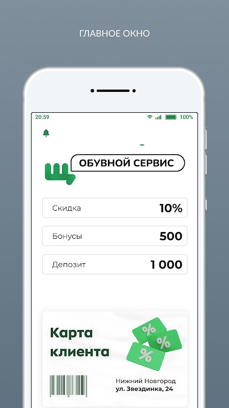 Aplikasi ini memungkinkan klien untuk melihat informasi tentang bonus yang diperoleh, serta skema diskon pribadi.