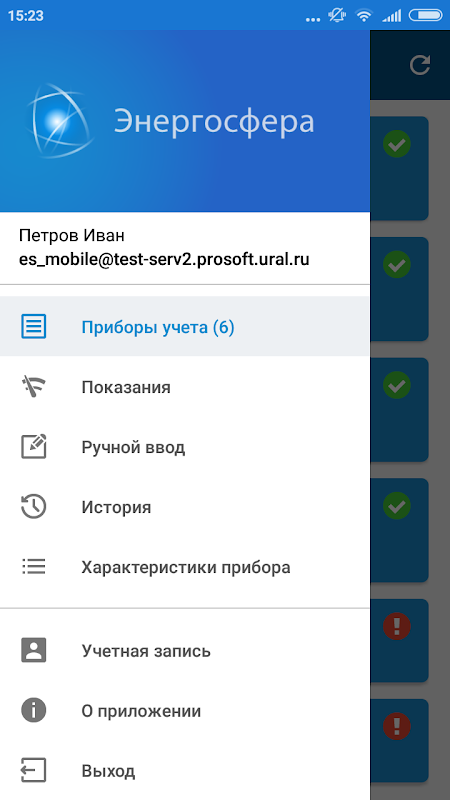 Versi seluler dari akun pribadi PC Pelanggan "Energosfera".