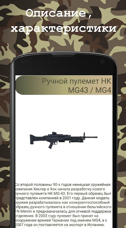 Ensiklopedia senjata api. Dalam aplikasi ini Anda akan menemukan informasi lengkap tentang semua jenis senjata api dan senjata kecil, tidak hanya dari model Rusia tetapi juga produsen asing. Senapan, karabin, pistol, revolver, senjata smoothbore, senapan mesin ringan (pp) dan banyak lagi akan Anda temukan di aplikasi ini.