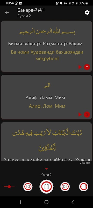Az surah 1-um lalu surah 10-um. Arabi, Kirilli, Tokiki.
