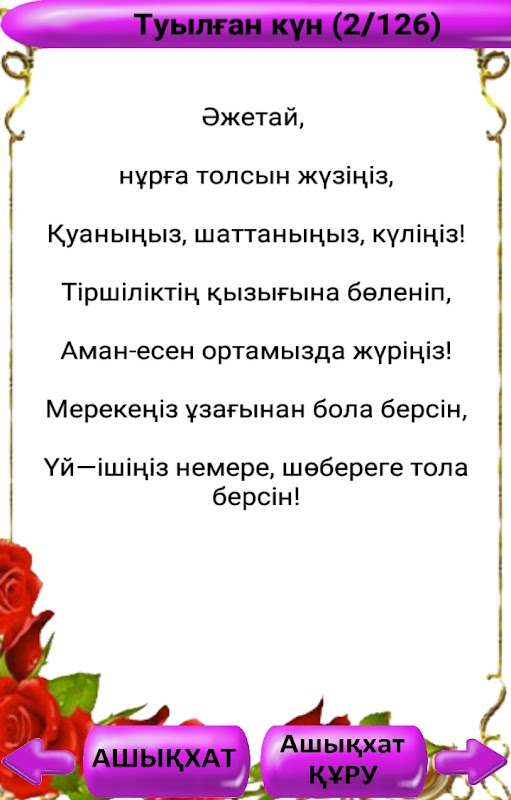 ZHANA KUTTYKTAULAR 2023 KAZAKHSHA TILEKTER BATALAR ASHYKKHATTAR. Tuylgan kүn men toylarga arnalғan қazaқsha құttyқtaular men tіlekter zhane Ak batalar. Azil kazak tilinde.