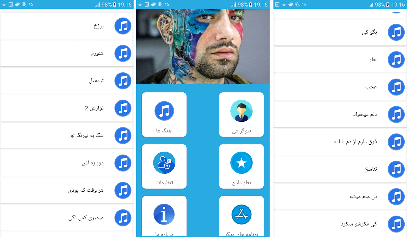 برنامه اهنگ های تتلو شامل تمامی آهنگ های موجود در آلبوم برزخ امیر تتلو می باشد که آهنگ ها را بصورت افلاین برای شما دوستداران امیر تتلو قرار دادیم