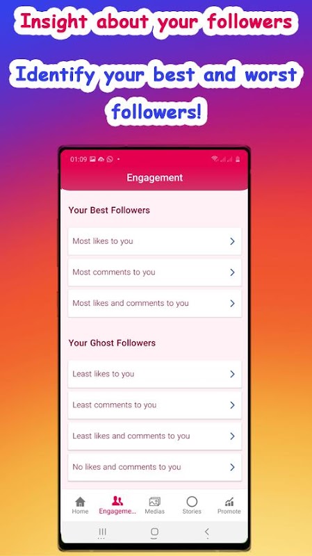 We DO NOT sell FOLLOWERS or LIKES if you are seeking for these you are in the wrong app. We just provide analytics for your account and some tools to understand your followers’ behaviour like who blocked you or who closed his/her account. By using these statistics, you can manage your publishing times, your followers’ interests to increase your Instagram popularity.
