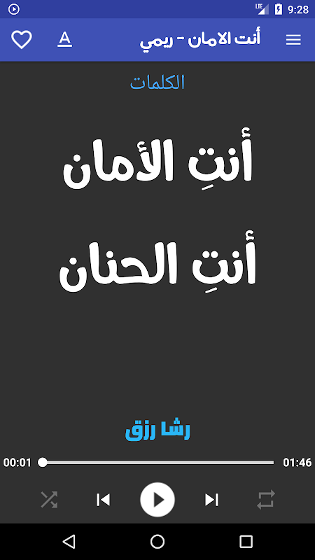 كلمات كل اغنية متوفرة اثناء سماعك للأغنية
