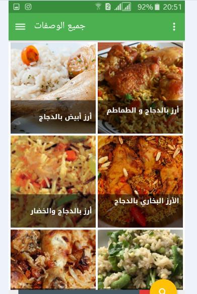 في تطبيق وصفات أرز بالدجاج ستجدين ما يلي :