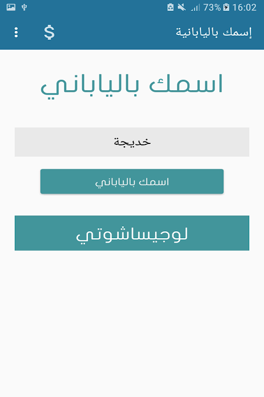 تطبيق طريف يقوم بتحويل اسمك من العربية الى اليابانية وذلك بتبديل الاحرف العربية بالاحرف اليابانية المقابلة لكل حرف عربي