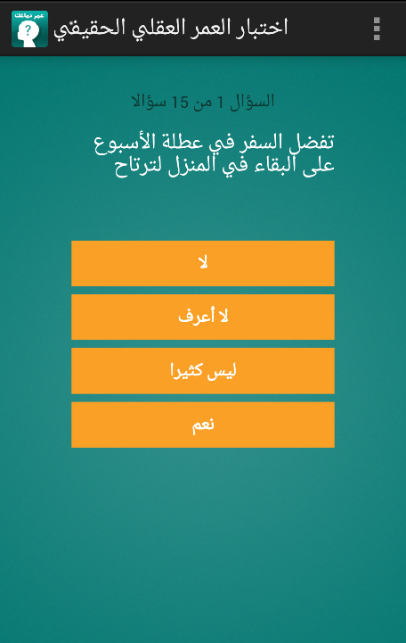 Aplikasi ini memberdayakan Anda untuk menguji kemungkinan melakukan sendiri usia mental yang nyata, dan melalui beberapa pertanyaan yang sangat tepat, kami menggunakan kriteria khusus untuk menentukan sifat pertanyaan.