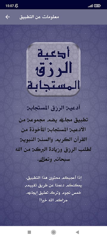 Orang mukmin harus senantiasa mengupayakan sarana, selain do’a dan permohonan kepada Tuhan Yang Maha Esa, karena juga dianggap sebagai salah satu sarana rezeki. Dalam aplikasi ini kami sajikan untuk anda berbagai macam permohonan memohon kemudahan kepada Allah SWT dan tercapainya cita-cita, baik itu mencari pekerjaan, berhasil dalam studi, mendatangkan uang, mendapatkan istri, dan lain sebagainya. Semua itu insya Allah bisa tercapai melalui doa, permohonan, dan ruqyah yang sah. Berbagai doa religi diambil dari hadis suci, hadis shahih nabi, dan dari kitab suci al qur'an untuk memohon kemudahan rezeki, karena semua rezeki ada ditangan Allah semata, maka dari itu kami persembahkan untuk anda doa-doa yang terkabul ini setiap saat pada saat salat subuh atau magrib, pada saat ramadhan, hari libur, dan setiap hari.Doa harian sebelum tidur dan pagi hari.Doa sholat tarawih dan sholat malam. Doa-doa ini diterima, Insya Allah, dan Anda dapat mendoakannya pada Idul Fitri, Idul Adha, pada Lailatul Qadr, dan pada pagi dan sore hari setiap hari, agar Tuhan Yang Maha Esa meridhoi Anda dan serahkan urusanmu kepadamu dengan rahmat dan kemurahan-Nya, Yang Maha Kuasa. Doa terindah untuk mematahkan mantra, mengusir mata jahat dan iri hati, Insya Allah SWT, serta menarik segala kebaikan dan kebaikan.