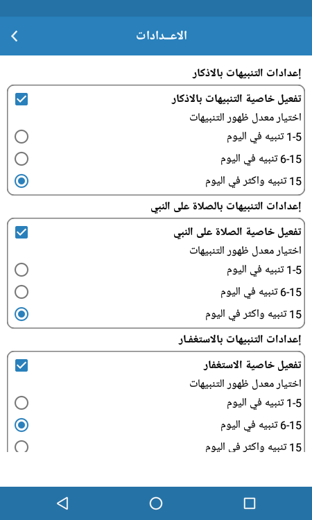 خاصية ظهور الاذكار و التنبيهات الصامته التي تحتوي على الاذكار والادعيه