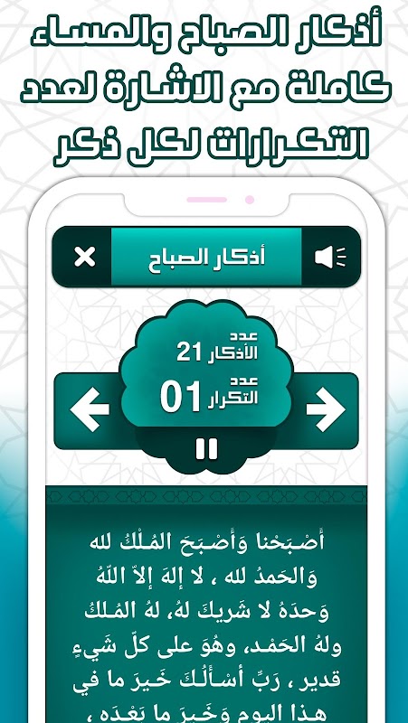 Kutipan untuk pagi dan sore hari, aplikasi gratis yang memungkinkan Anda untuk mendengarkan atau membaca zikir dan permohonan