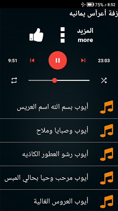 Ini fitur latar belakang keren dan penelusuran cepat di mana Anda dapat mendengarkan semua lagu zaffa Yaman