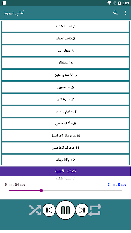 Eksklusifnya, satu-satunya aplikasi yang memuat 100 lagu dari lagu-lagu Fayrouz, dengan akurasi tinggi, dan tanpa biola internet