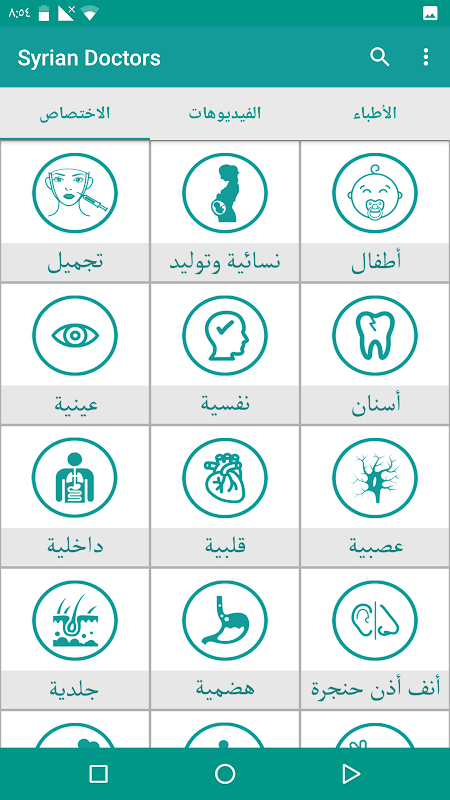 2 - قائمة بالاختصاصات الطبية المختلفة لتصنيف الفيديوهات حسب القسم (ولذلك لسهولة الاطلاع على كافة الفديوهات لقسم معين)