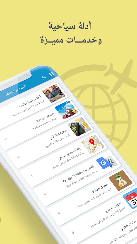 - قسم خدمات مميزة يحتوي على العديد من الخدمات المفيدة للسائح مثل : عروض سياحية ، أدلّة سياحية ، السفارات ، خرائط تفاعلية سياحية وبرّية وفندقية ، اتجاه القبلة ، الطقس ، محول العملات ، المترجم .