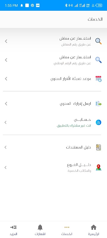 تطبيق خدمي للمتقاعدين Aplikasi layanan untuk pensiunan