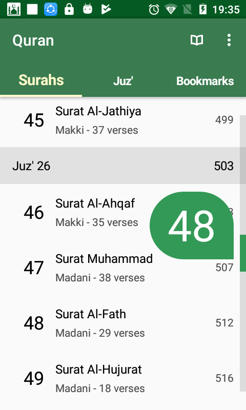 Profesional Quran App untuk pengguna Android termasuk Search, Audio, Bookmark dll ..