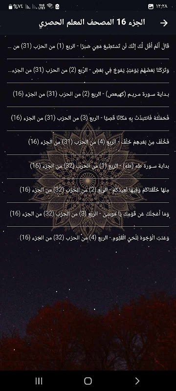 Penerapan Al-Qur'an yang diajarkan oleh Syekh Mahmoud Khalil Al-Husari tanpa Internet memberi Anda kesempatan untuk mendengarkan bacaan Al-Qur'an seluruh paruh terakhir, dengan suara yang jernih dengan intonasi sempurna yang menjadi ciri khas Syekh Al- Husari (semoga Tuhan mengasihaninya) dengan fitur pengulangan ayat. Aplikasi ini dibedakan oleh fakta bahwa ia bekerja tanpa internet, dan ini untuk memudahkan penggunaannya oleh anak-anak dan orang dewasa untuk membaca dan menghafal Kitab dari Tuhan.