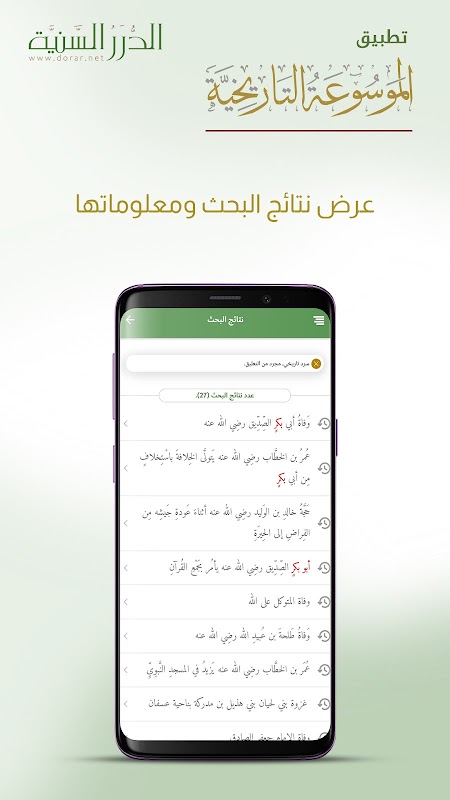 Aplikasi komprehensif gratis dari ensiklopedia sejarah yang diproduksi oleh Al-Durar Al-Sunni Foundation
