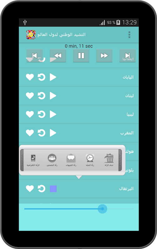 في التطبيق مجموعة من الاناشيد الوطنية للعديد من الدول بالصوت : النشيد الوطني الفرنسي، النشيد الوطني الايطالي، النشيد الوطني الروسي، النشيد الوطني المغربي، النشيد الوطني الجزائري، النشيد الوطني العراقي، النشيد الوطني النمساوي، النشيد الوطني الامريكي، النشيد الوطني البرتغالي، النشيد الوطني السعودي، النشيد الوطني المصري، النشيد الوطني القطري، النشيد الوطني التونسي، النشيد الوطني الانجليزي...