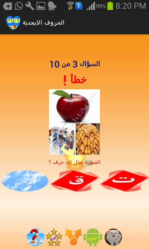 يحتوي لعبة شيقة لاختبار الطفل بعد تعلم الحروف تحتوي عدة اقسام مثل: