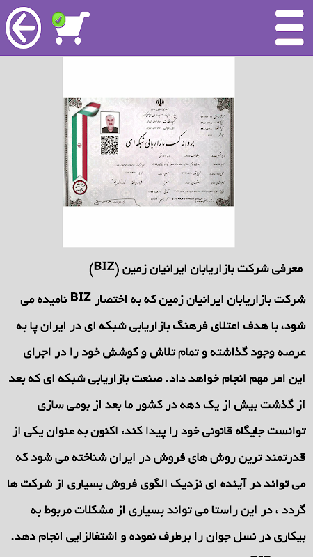 بازاریابان شرکت می توانند در هنگام فروش یا پرزنت از طریق این اپلیکیشن مجوز و محصولات شرکت را معرفی کنند و این اپلیکیشن را به تمام افراد تیم خود ارسال کنند.