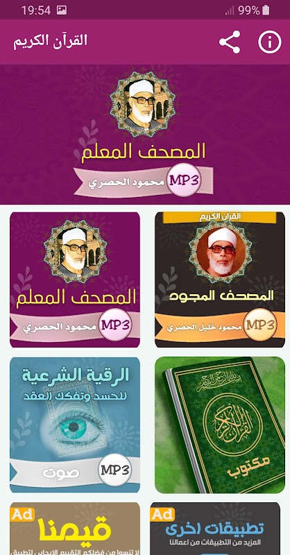 Antarmuka aplikasi Quran sangat sederhana, yang memungkinkan Anda untuk menggunakannya dengan mudah