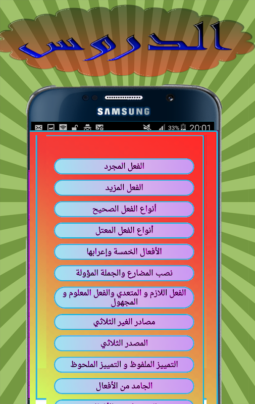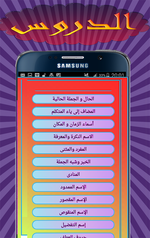 تطبيق تعلم العربية بسهولة يحتوي على :