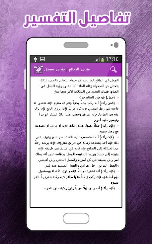 تطبيق لتفسير الاحلام بدون انترنت يمكنكم من تفسير حلمكم بمستندات شرعية وتفسيرات علم النفس.