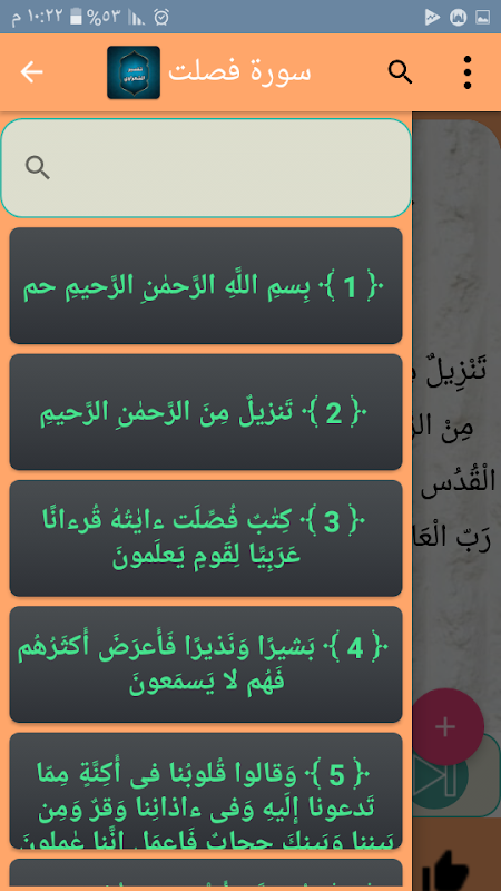 ◉ Bagian untuk mencari dalam jumlah surah tertentu, sesuai dengan yang diinginkan pengguna.