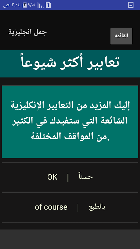 Satu set kalimat bahasa Inggris yang diterjemahkan secara luas penggunaan Arab