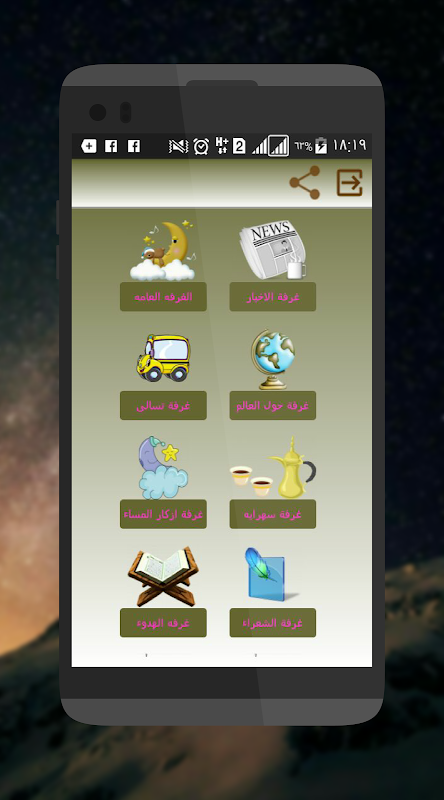 يتم الدخول للتطبيق عن طريق الفيسبوك و ذلك للحفاظ على الاداب العامه و تبادل الاحترام بين المستخدمين