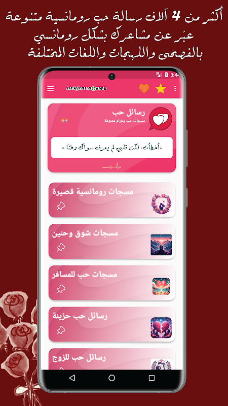 Berbagai pesan cinta dan romantis - dalam antarmuka yang elegan dan berbagai kategori untuk memenuhi semua pecinta.