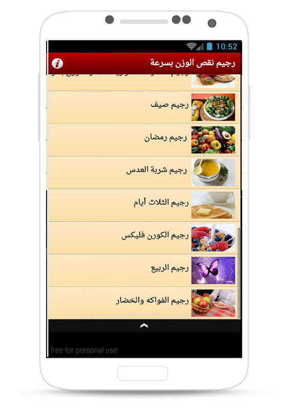 نقدم لكم تطبيق ريجيم و تخلص من الكرش ودهون و يحتوي هذا التطبيق على مقادير متنوعة مع طريقة تحضير خطوة بخطوة.المميزات: