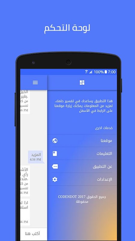- هذا التطبيق طُوّر بواسطة شركة كود ان دوت، يمكنك زيارة الموقع لمزيد من التفاصيل: www.codendot.com