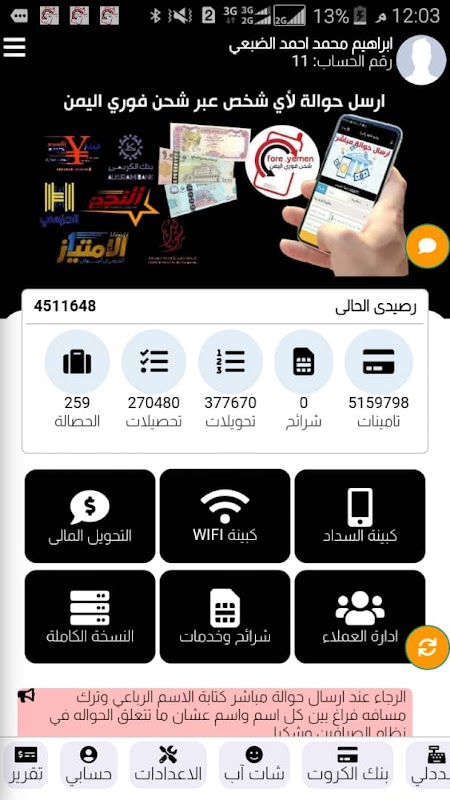 Layanan Wi-Fi, membeli dan menjual kartu Wi-Fi untuk semua jaringan Wi-Fi di Yaman, dengan tambahan jaringan gratis.