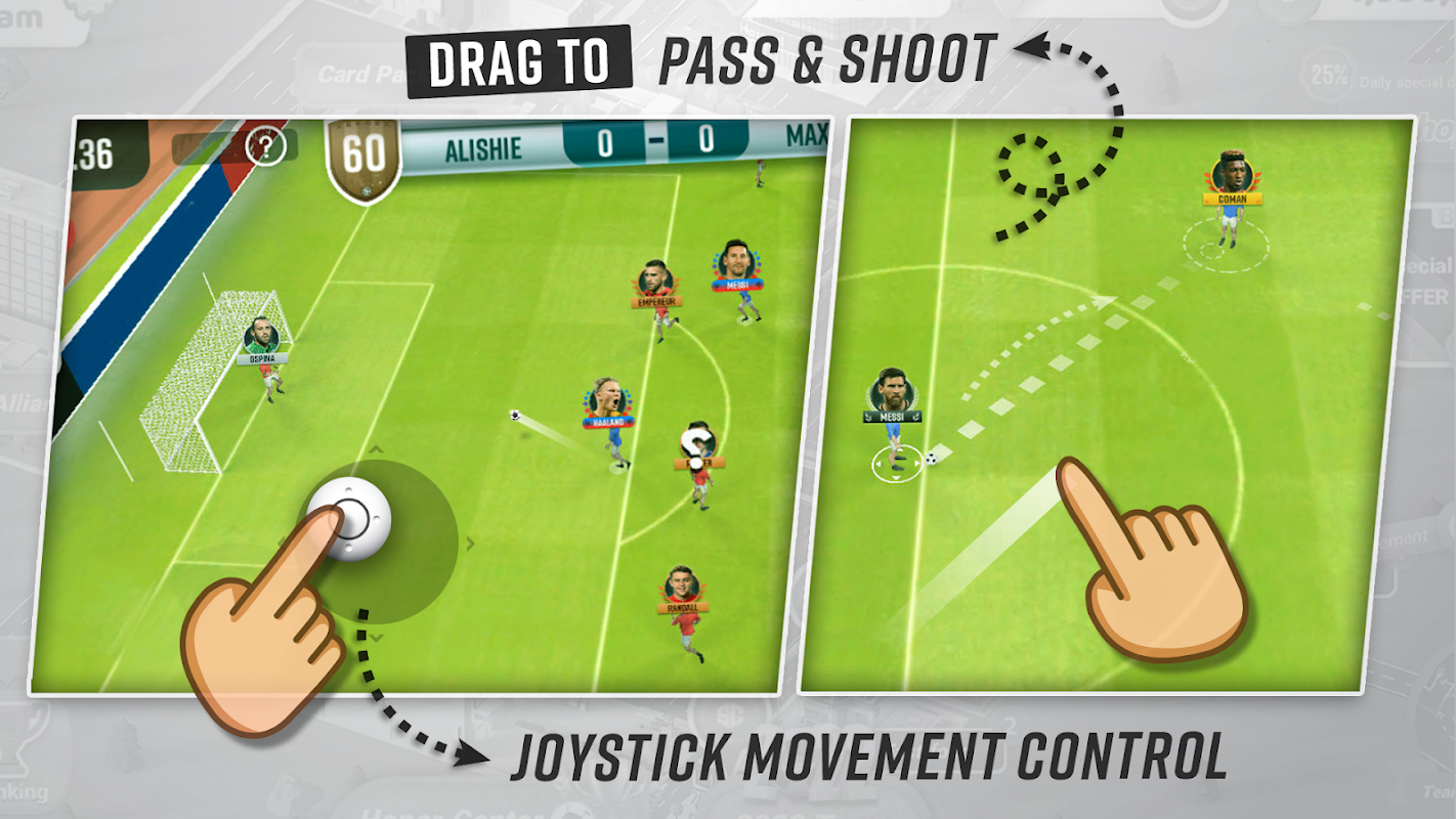 - Bersaing dengan tim pengguna lain dalam pertandingan sepak bola yang sepenuhnya disimulasikan