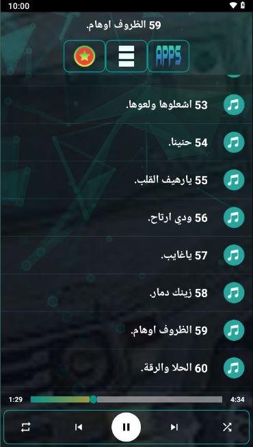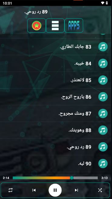 Anda dapat menjelajahi lagu-lagu terbaru di aplikasi ini karena koleksinya diperbarui secara berkala untuk memastikan Anda mendengarkan karya musik terbaru. Anda juga akan menemukan kumpulan lagu sedih yang mengungkapkan perasaan mendalam dan menyentuh hati, selain lagu indah yang mewujudkan seni puisi dan melodi tradisional dalam bentuknya yang paling indah.