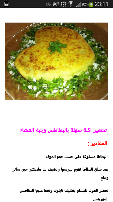+ تحمييل الوصفات المصورة بسهولة الى جهازك و العودة ليها من خلال " التنزيلات"