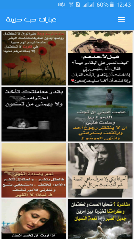 احلى كلام في الحب والغرام هو تطبيق يحتوي على مجموعة كبيرة من الصور الرومانسية لمشاركتها مع من تحب .. ولأنه في عالم الحب ليس كل شيء هو دائما السعادة، أضفنا أيضا كلام حب حزين للتعبير عن مشاعرك بأفضل طريقة.