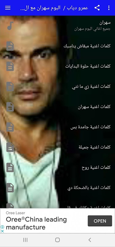 تطبيق يحتوي على كلمات واغاني اخر اصدارات الفنان عمرو دياب وهو ألبوم سهران , حيث يمكنك الاستماع لهذه الاغاني بدون وجود الانترنت