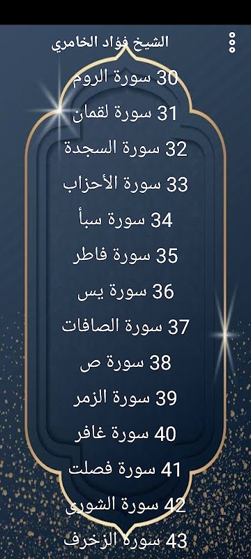 The entire Qur’an recited in the voice of the reciter Sheikh Fouad Al-Khamiri, without the Internet.