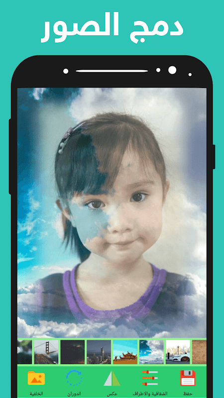 - menggabungkan dua gambar dari aplikasi di mana Anda dapat mengintegrasikan gambar di telepon dengan satu sama lain dan dengan kelompok latar belakang brilian dalam aplikasi Mnkhalal perubahan yang ada dalam rasio transparansi tepi unit.