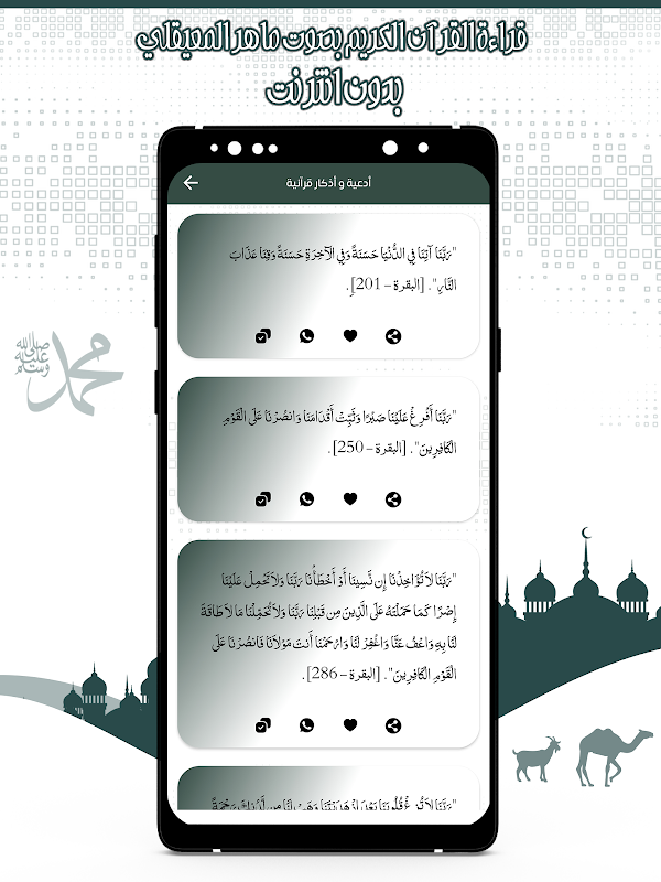 Dan jika Anda adalah penggemar mendengarkan Noble Qur'an dengan suara Sheikh Maher Al-Muaqili ... dan rasi bintang syekh lainnya, atau jika Anda ingin mempelajari ketentuan intonasi atau berkenalan dengan kertas hukum Islam terkuat, jangan ragu untuk melihat sisa aplikasi kami di toko yang tersedia untuk pengguna secara gratis dan mudah.