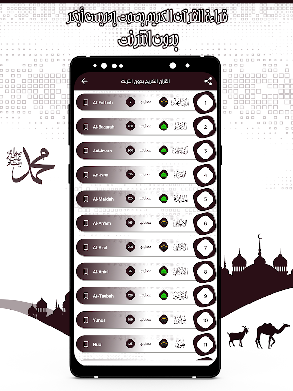 Penerapan Al-Qur'an Mulia dengan suara Idris sebelumnya memungkinkan Anda untuk mendengarkan semua surah Al-Qur'an Mulia setelah menentukan nama surah yang ingin Anda dengarkan, yang dibacakan Syekh Idris sebelumnya di setiap surah.