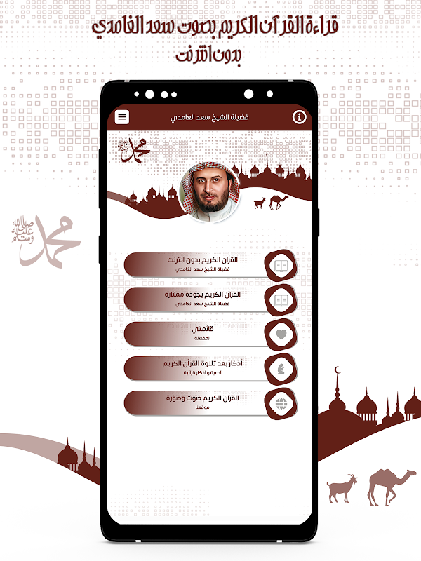 Penerapan Noble Qur'an menyediakan suara Saad Al-Ghamdi. Anda dapat mendengar semua surah Al-Qur'an melalui ponsel atau tablet Anda dengan mudah dan mudah melalui satu program yang berisi semua surah Al-Qur'an Aplikasi bacaan Al-Qur'an dibedakan dengan suara Saad Al- Ghamdi dengan gratis dan tersedia di toko untuk ponsel Android. Untuk menikmati membaca Al-Qur'an yang Mulia dengan suara Syekh Saad Al-Ghamdi di mana pun Anda mau.