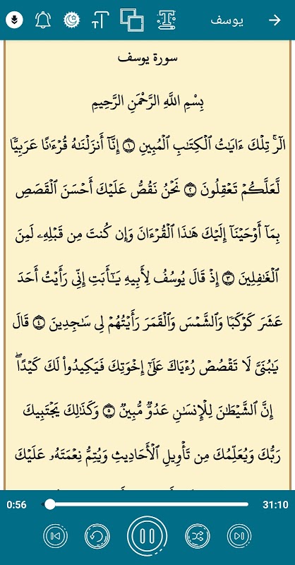 ميزة تكبير الخط لتسهيل قراءة سور القرآن الكريم.