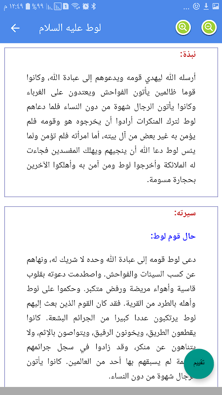 Aplikasi tersebut berisi ayat-ayat Al-Qur'an yang menjelaskan keadaan setiap Nabi, serta hadits dari sunnah nabi yang disucikan.