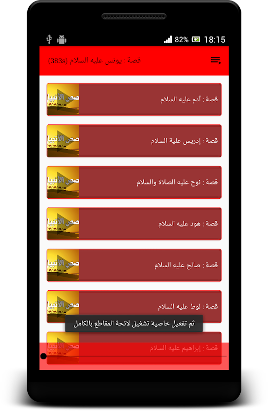 يشتغل تطبيق قصص الانبياء كاملة بدون أنترنت MP3 على جميع اجهزة الاندرويد من هاتف جوال ولوحات التابلت وغيرها