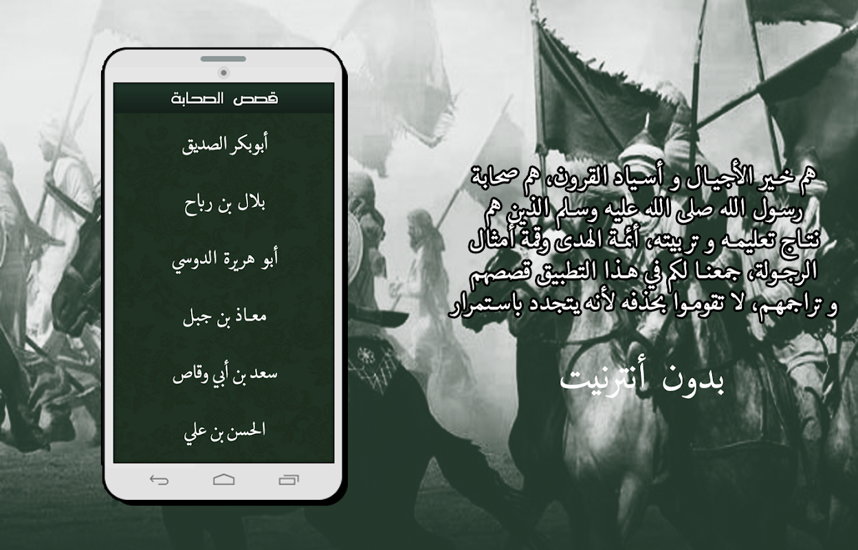 تطبيق قصص الصحابة رضي الله عنهم بدون انترنت ستجد فيه أبرز الأحداث و المعارك، و الفتوحات العظيمة، في عهد الصحابة رضوان الله عليهم..